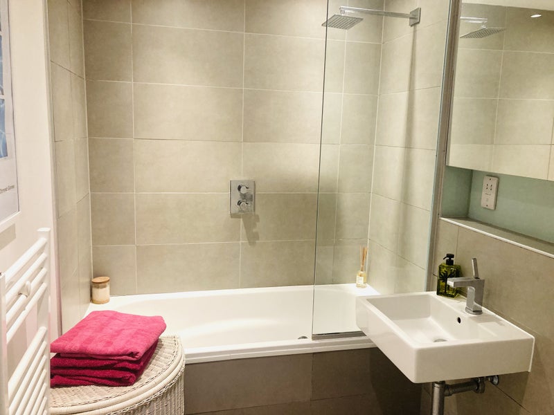 Located in Clapham Common, a 5-minute walk to Clapham Common Tube, this Mon to Friday Let is a spacious, quiet, recently decorated and light double room with a private bathroom, storage, wifi, and easy access to the front door that allows you to enter and exit the flat easily without disturbance. Equipped with a very comfortable, large double bed, a wardrobe for storage, additional storage available in the hallway, and modern, secure windows allowing light into the space, the room has everything needed for a Monday to Friday lodger. The private bathroom has a bath, shower, heated towel rail, underfloor heating and plenty of storage, and is located opposite the bedroom.