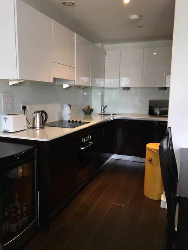 The shared living space has a TV plus Sky, a large sofa, and a working kitchen with all the amenities.