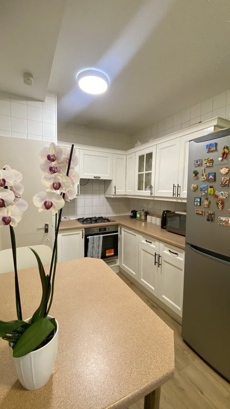 You’d be sharing with two easygoing professional women – one teacher and one administrator. We both have our routines and work remotely/hybrid during the week but enjoy a relaxed, friendly home where we occasionally chat in the kitchen or unwind after work. We keep the flat clean, calm, and welcoming 🌼.