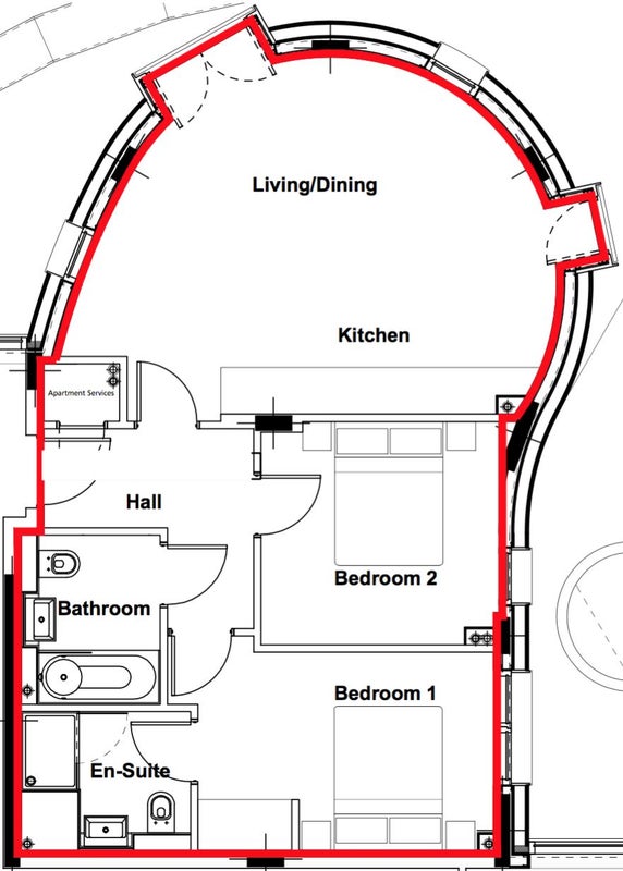 Two-bedroom apartment; one family bathroom plus one ensuite