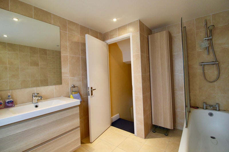 The main bathroom, is tiled wall to floor has a thermostatically controlled shower.