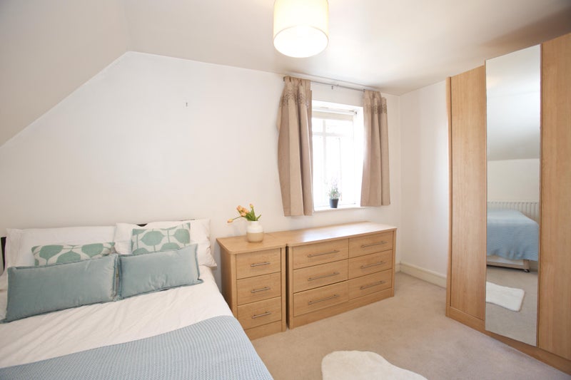 The available room - Bedroom 5 on the floor plan comes fully furnished including a double bed, memory foam mattress, built in wardrobes , chest of drawers and bedside table.