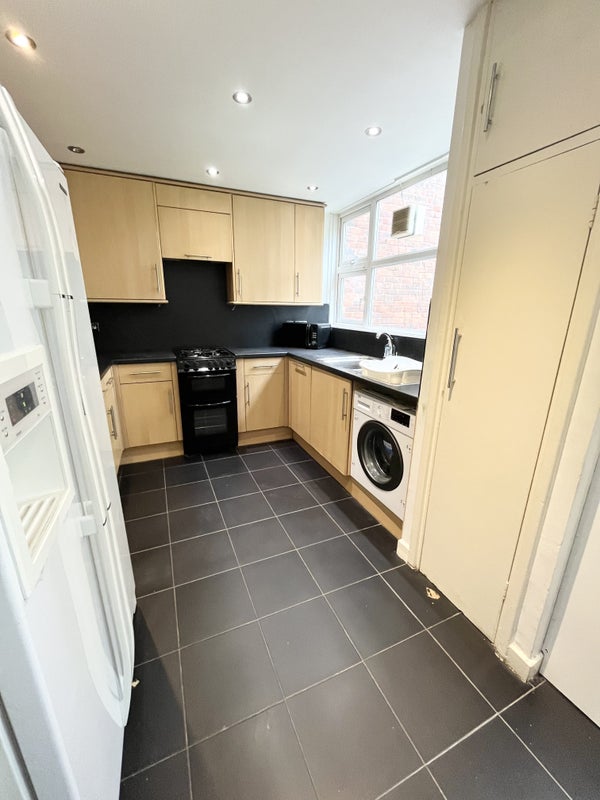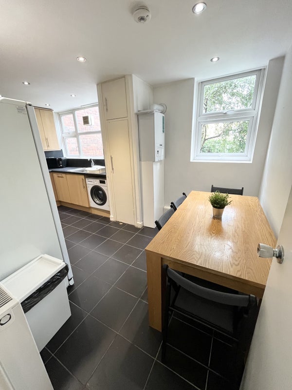 Bathroom with separate toilet, fully fitted kitchen with eating area.
