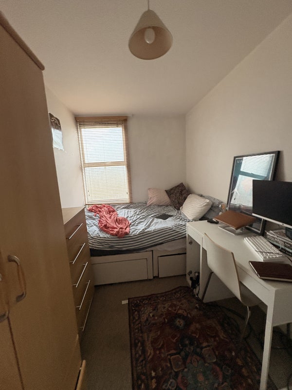 Your room is on the top (third) floor of the building, on its own private side of the flat. You’ll have your own bathroom (loo, sink, shower) and a furnished double bedroom (desk, double bed, chest of drawers, wardrobe), plus an extra rack and hangers in the corridor if you need a bit more space.