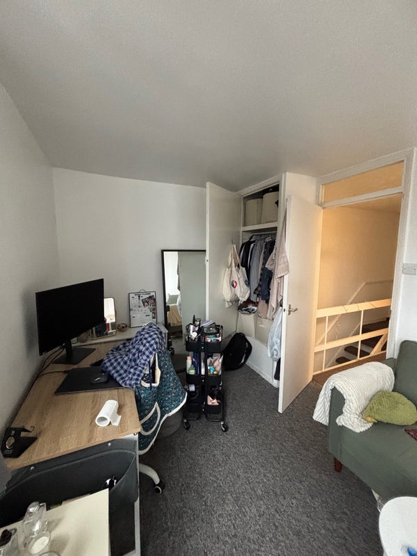 Top floor. 4 bedrooms 1 bath, washer included, great balcony (for a cheeky cig or two). Windows on both sides, great lighting. Shared living room and a good amount of storage. 5 min from clapham junction, 8 min from Lidl/Asda, 10 min to pubs in Clapham.