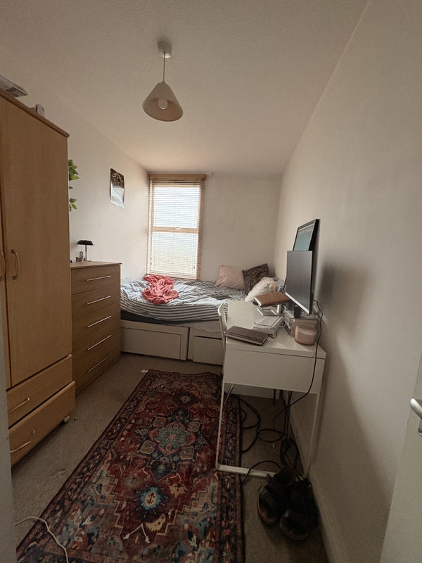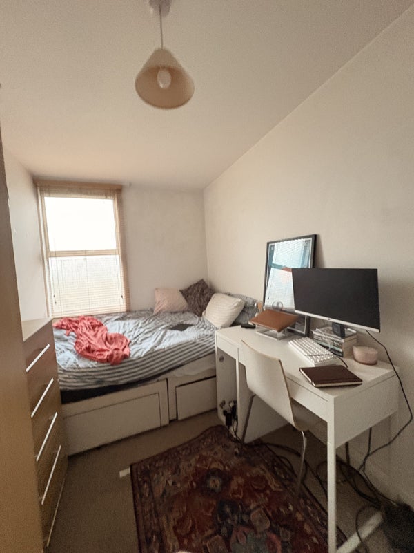 Your room is on the top (third) floor of the building, on its own private side of the flat. You’ll have your own bathroom (loo, sink, shower) and a furnished double bedroom (desk, double bed, chest of drawers, wardrobe), plus an extra rack and hangers in the corridor if you need a bit more space.
