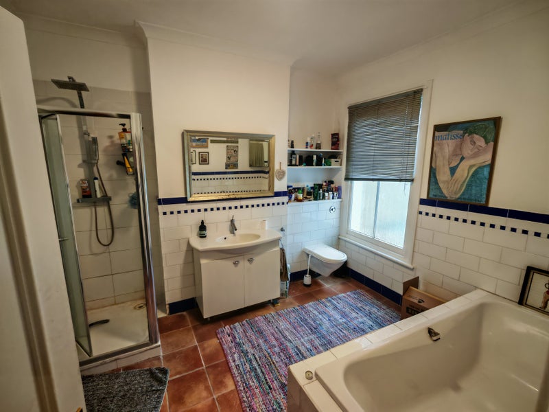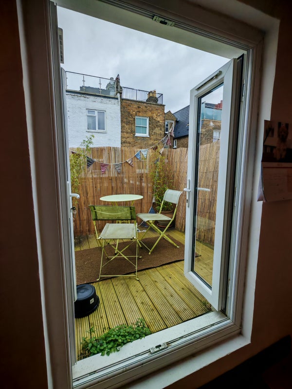 The flat boasts possibly the largest bathroom in Clapham junction, as well as a second bathroom just outside of the room. A modest kitchen and living area with an additional patio for dinners outside in the sun!