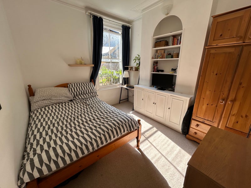 A good sized spacious room that gets great natural light and comes fully furnished with a double bed, mattress, desk, mirror, and wardrobe.