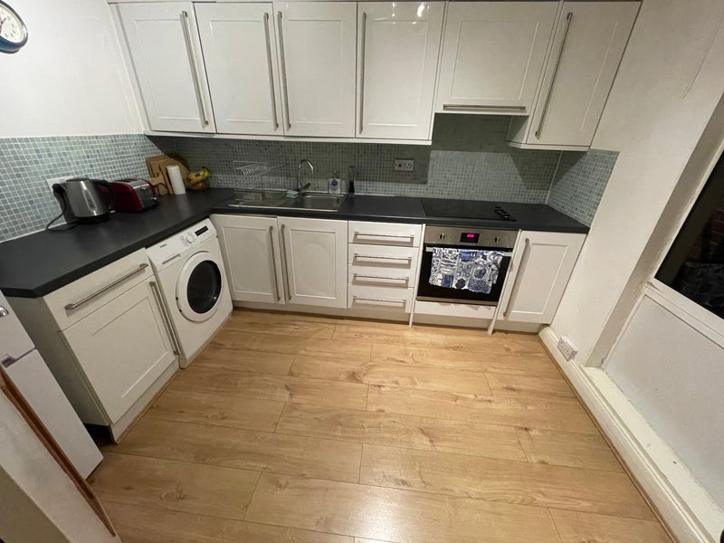 The flat has two double bedrooms and two full bathrooms. There is a spacious living room with couches and a TV, as well as an open plan dining area. There is a separate kitchen, which is fully equipped with pots, pans and cutlery. There is a full bathroom for solely your use, which is across the hall from your bedroom (not en-suite).