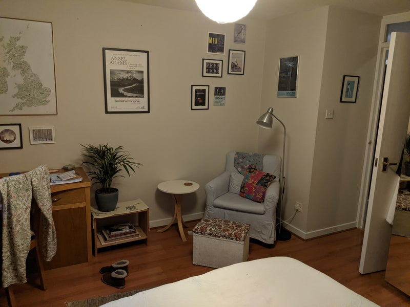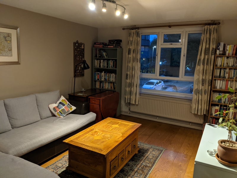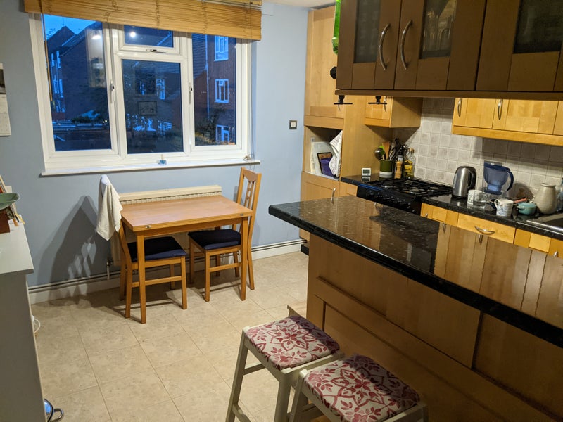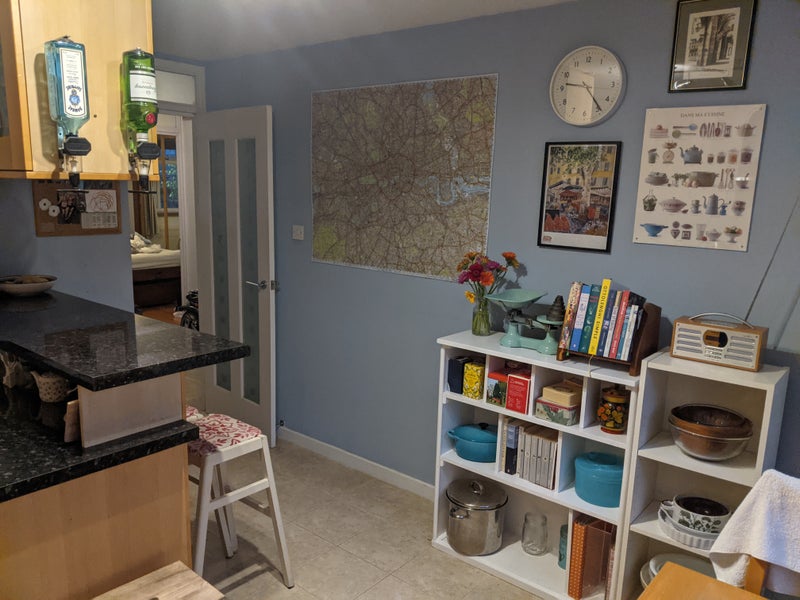 Hello and welcome to our flat! We are looking for a couple to replace the lovely Sam and Olympe who are moving out after almost four years having had a baby. I no longer live in the flat but I do commute up to London during school term time and stay in the second bedroom Monday, Tuesday and Wednesday evenings. Most of the time, then, the place will be completely yours: those days I’m here, I leave early in the morning and get back late in the evening, rarely if ever using the kitchen, so that’s why I ticked “live-out landlord” rather than “live-in”. That said, I’m not unfriendly, and I got to know the last couple really well!