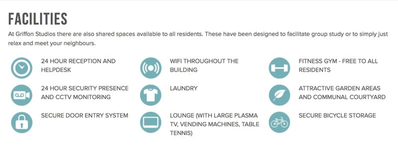 Facilities include en-suite bathroom and kitchenette, purpose built study area, social space is provided in the form of a large common room with sofas, a large screen TV and break-out study booths. Games areas and a free on-site gym facility are available, whilst the landscaped courtyard and gardens provide outstanding outdoor space in urban London.