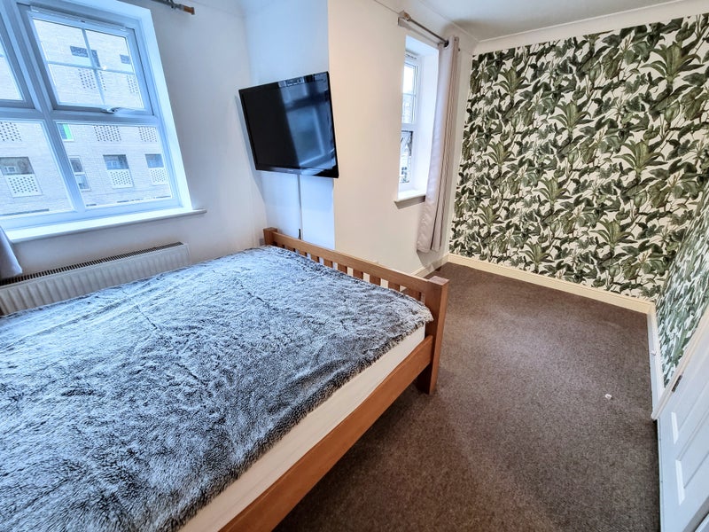 King bed, large tv, desk space and under bed storage. Ideal for a young professional working in and around Central London.