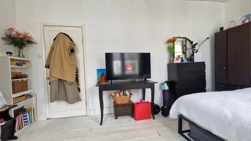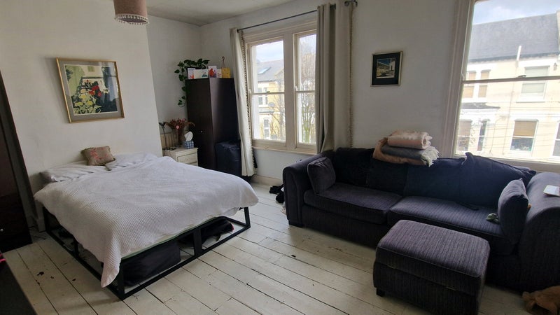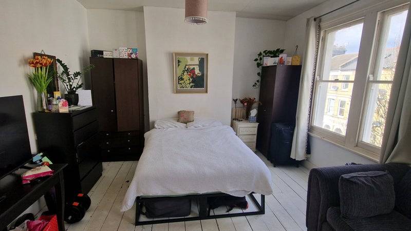 Large airy double bedroom in quiet house situated between Clapham North and Brixton tube stations.