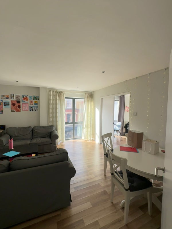 The flat has a big sitting room, kitchen, and bathroom, and the room itself comes with a balcony.