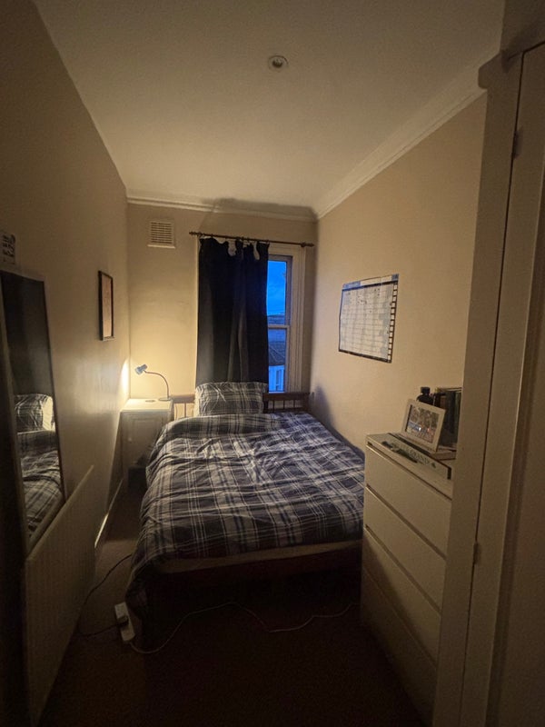 The room comes furnished with the bed and mattress included, a chest of drawers, bedside table, mirror and a wardrobe.