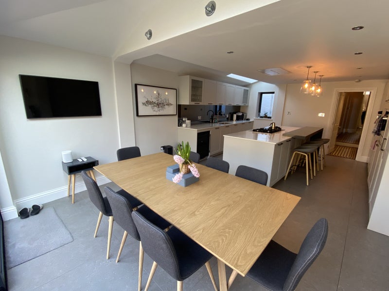 The house underwent a full refurbishment in 2021. You’ll have access to a large, fully equipped kitchen/dining area (with dishwasher), 120MB Wi-Fi, and a garden with two lovely social zones.