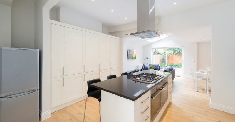 Spacious open-plan kitchen, dining, and lounge area