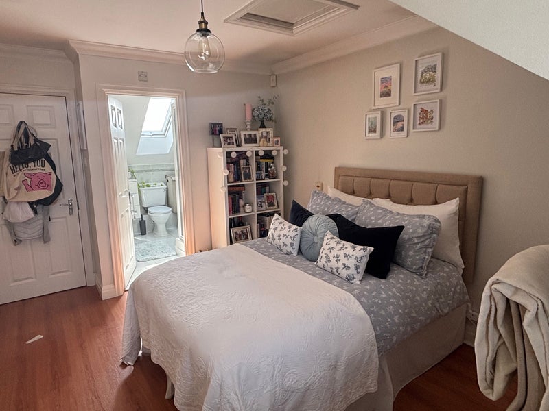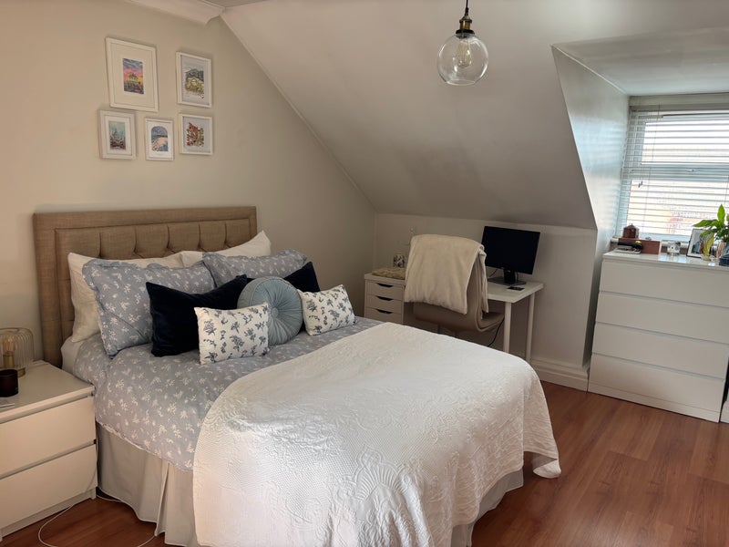The room is unfurnished (apart from the drawers in the bathroom which are included) and benefits from loads of storage. It is the only room on the floor so it is super quiet.