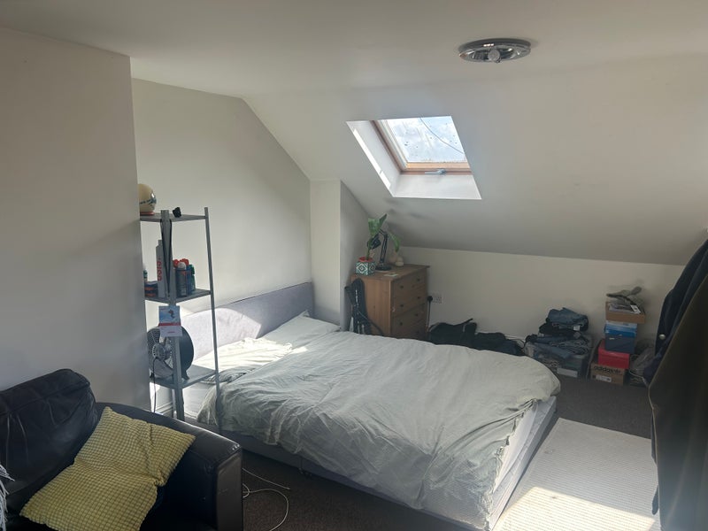 Large multi-storey home featuring a generous, semi-furnished bedroom with garden views (bed, sofa & chest of drawers). House includes 2 bathrooms, a spacious fully equipped kitchen, and a comfortable living area.