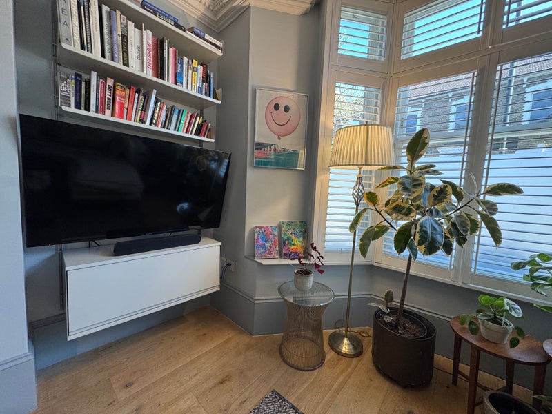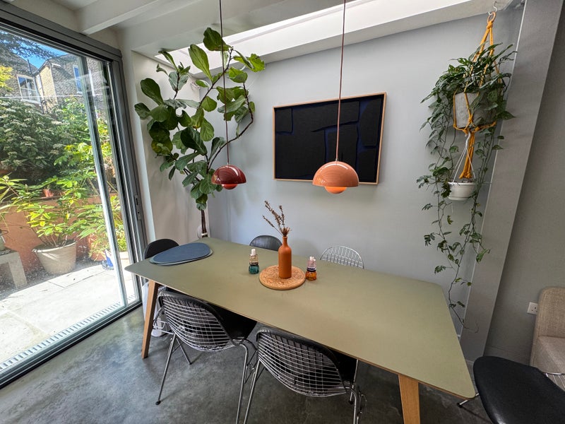 Minimal, considered and full of natural light. The open-plan living room flows through sliding doors into a private garden. Fully equipped kitchen, strong Wi-Fi, washing machine and dryer, bike parking and on-street parking.