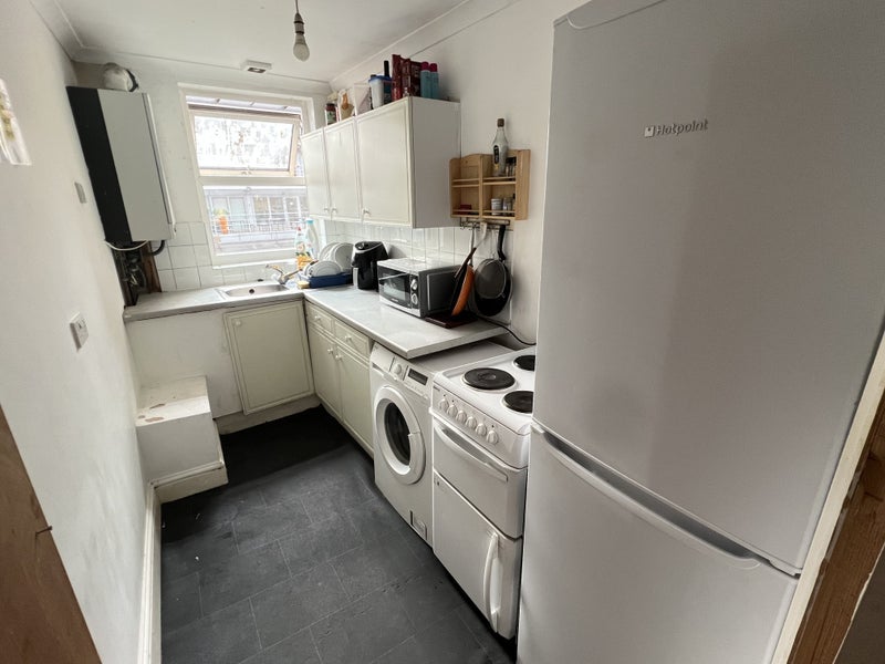 The property is sitting on the fourth floor of a purpose-built building above an Italian restaurant. The flat comprises of two double bedrooms (one is a living-room conversion ) and a single bedroom.