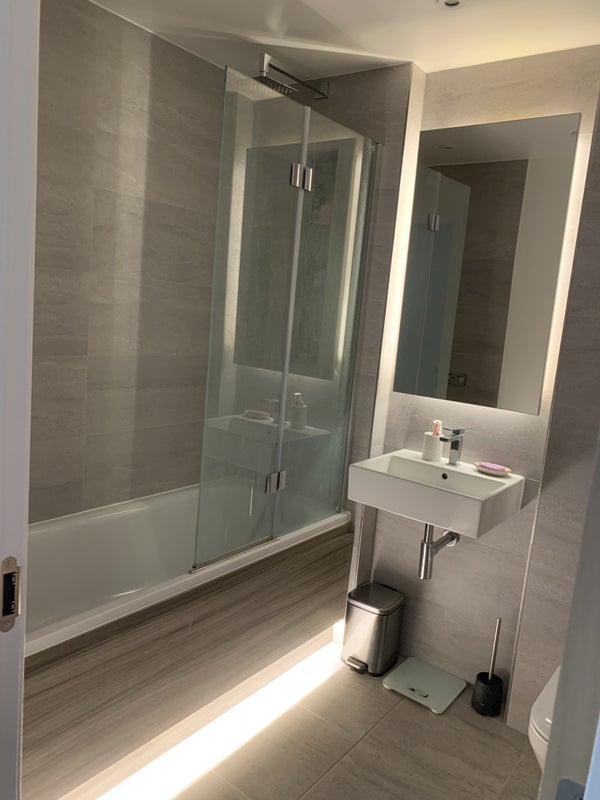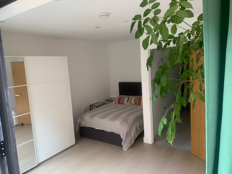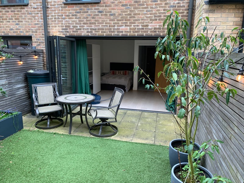 Bright and spacious room with its own private garden in a modern four-bedroom townhouse located within a secure development with concierge, gym, and sauna. The room has a flexible layout and can be set up with a sofa, desk, or to your liking.