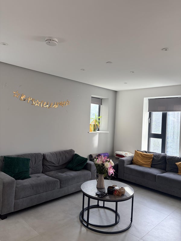 The room itself is really spacious and comes with its own private ensuite bathroom, which is a huge plus. The flat is a modern new build, so everything is well-maintained. We also have a lovely balcony, and the kitchen and living room get plenty of natural light, making them lovely and bright. The kitchen also has a dishwasher and washer/dryer.