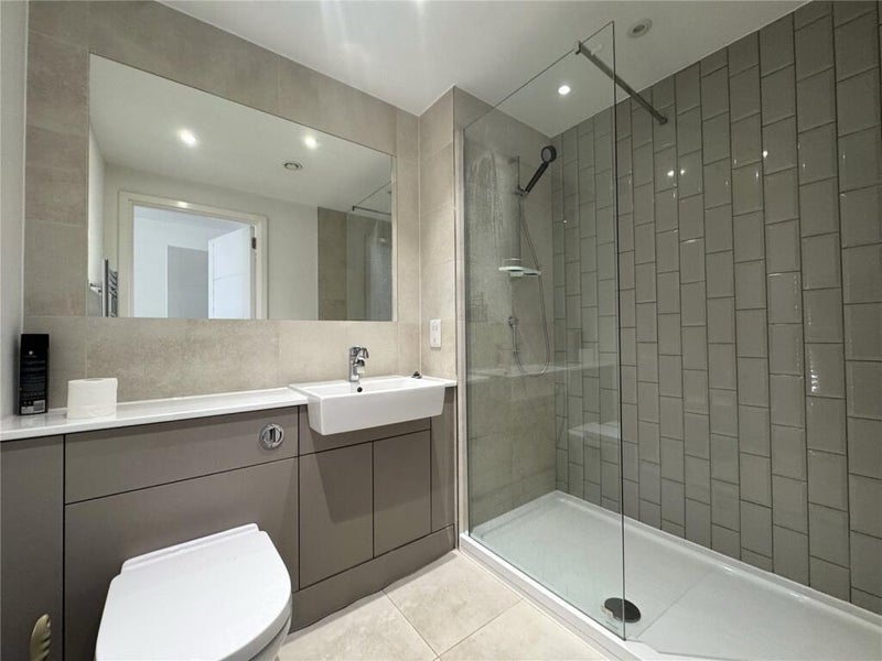 The room is a spacious en-suite master bedroom with a private bathroom, furnished with a 1.5m double bed. Rent is £900 per month, excluding bills (preferably a non-student tenant due to council tax sharing). The building includes free access to a gym and swimming pool.