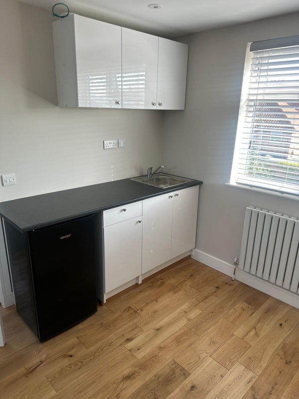 A bright and well-presented studio flat available to rent, offering a modern and comfortable living space ideal for professionals or students. The property features an open-plan layout with a spacious living and sleeping area, complemented by large windows that allow plenty of natural light to fill the room.