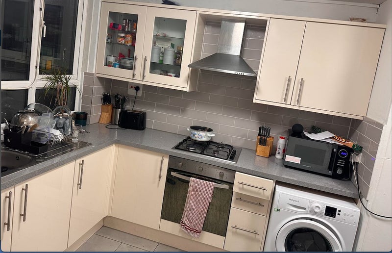 I have a lovely double bedroom flat available in a two bedroom flat. The flat is spacious and with two floors, the bottom floor consisting of the roomy living room and kitchen. Upstairs we have the two bedrooms and separate toilet and bathroom. The bedroom comes with a small built in wardrobe and chest of drawers only.