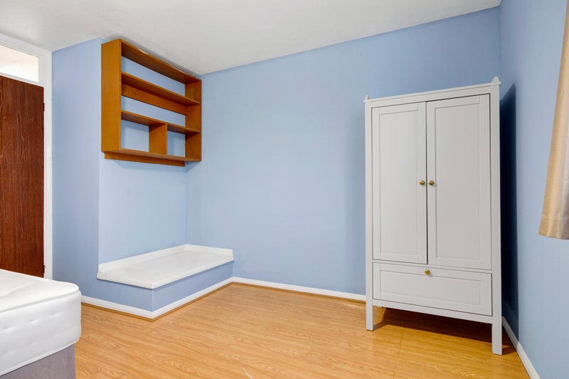 - Fully furnished. Included is a double bed with drawers, separate double cupboard, wall shelves, desk with storage and chair.