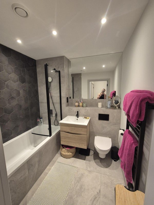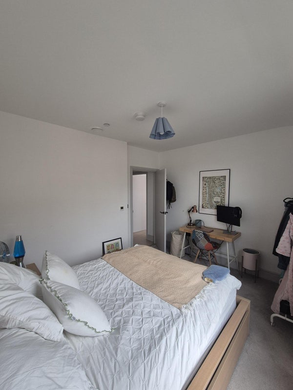 Double bed room in a modern two bed flat. The flat has two bathrooms so although the room for rent does not have a bathroom attached to it, you will have a bathroom all to yourself as I only use the en-suit attached to mine. The flat is located between Colliers Wood and South Wimbledon Station and is an under 10 minute walk to each station. It is also a 30 minute walk and under 20 minutes on the bus to Wimbledon station.