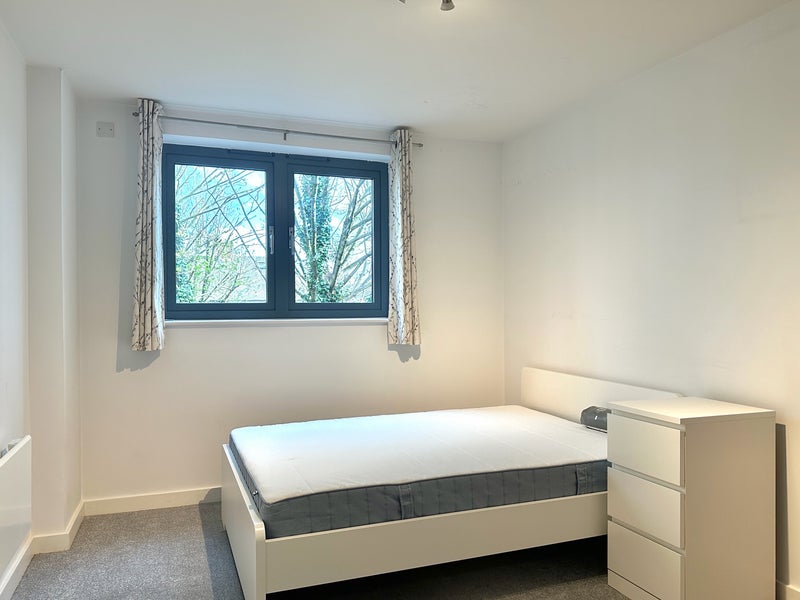The room is fully furnished with a double bed, bedside table, and double wardrobe, and includes sole use of a modern bathroom with both bath and shower.