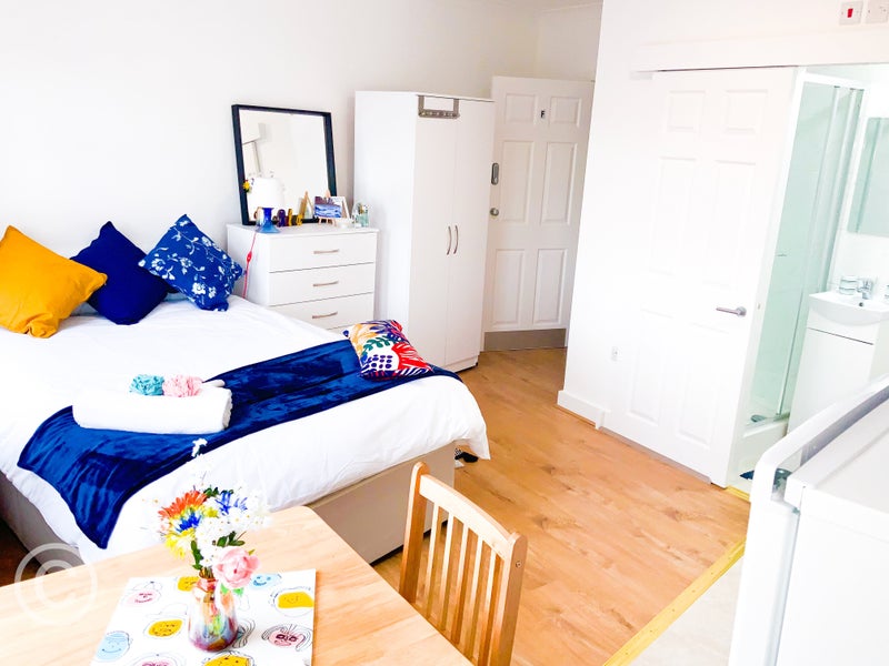 Extra storage space underneath the double bed.