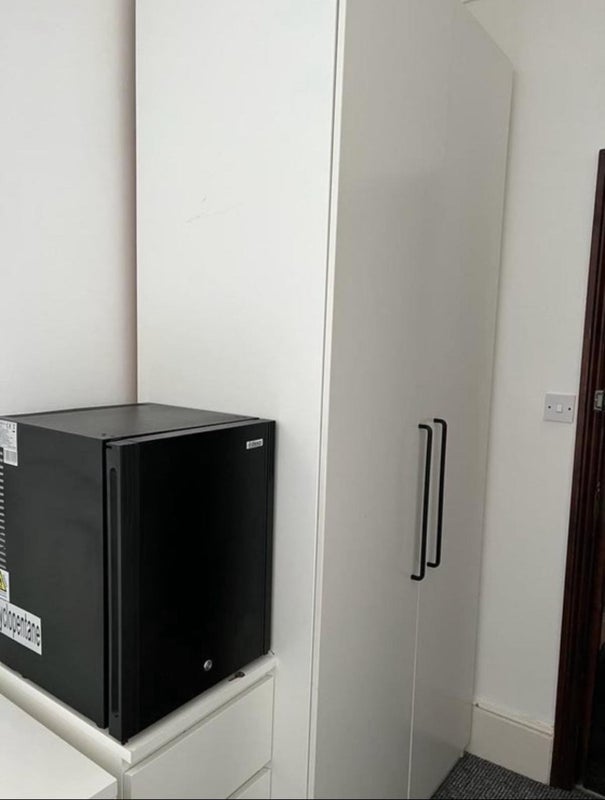 Fully furnished, modern, single room in a shared house. There is a large, double wardrobe with drawers, a desk with chair and a bed. The room will be professionally cleaned.