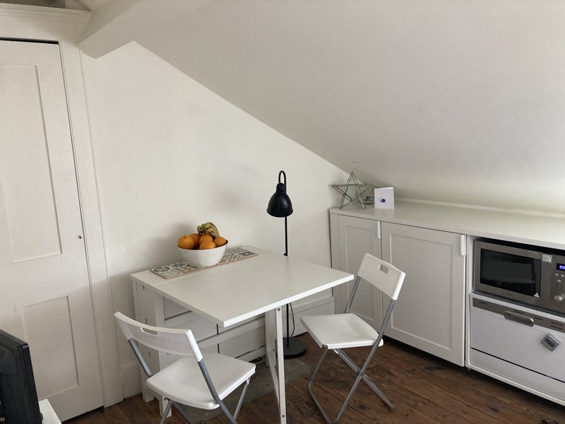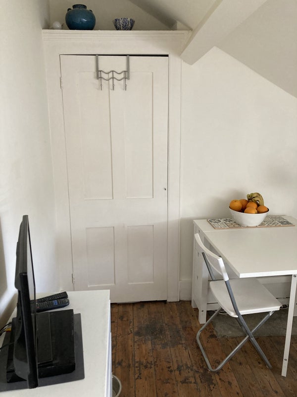 Accommodation: Newly renovated and refurbished studio apartment in period house. King size bed, new firm mattress, waterfall shower and bath, kitchenette with dishwasher, combi microwave/oven, induction hob, washing machine and tumble dryer. The flat is on the top floor and is accessed via a shared.