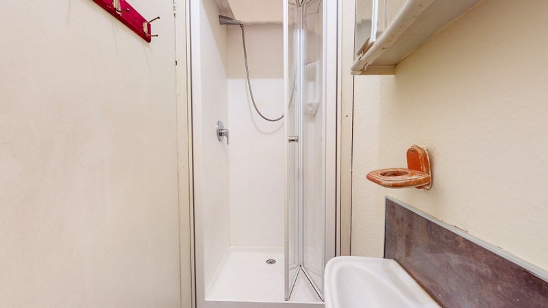 - This studio has an ensuite bathroom with a shower