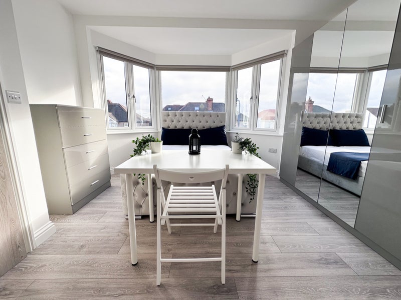 The room is fully furnished and finished to a high standard, featuring a comfortable double bed, large mirrored wardrobe, chest of drawers, desk with chair, and plenty of natural light from the beautiful bay windows. The room also benefits from its own private ensuite bathroom, providing extra comfort and privacy.