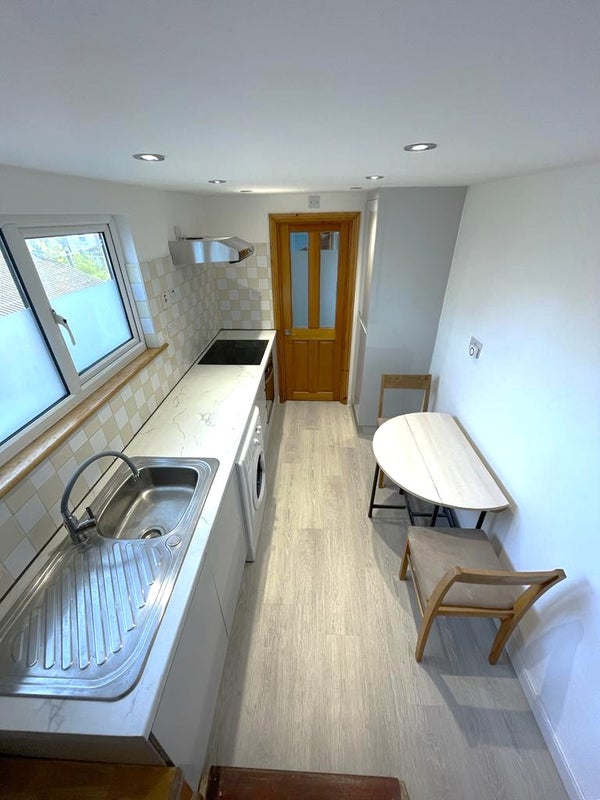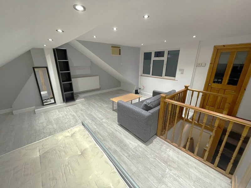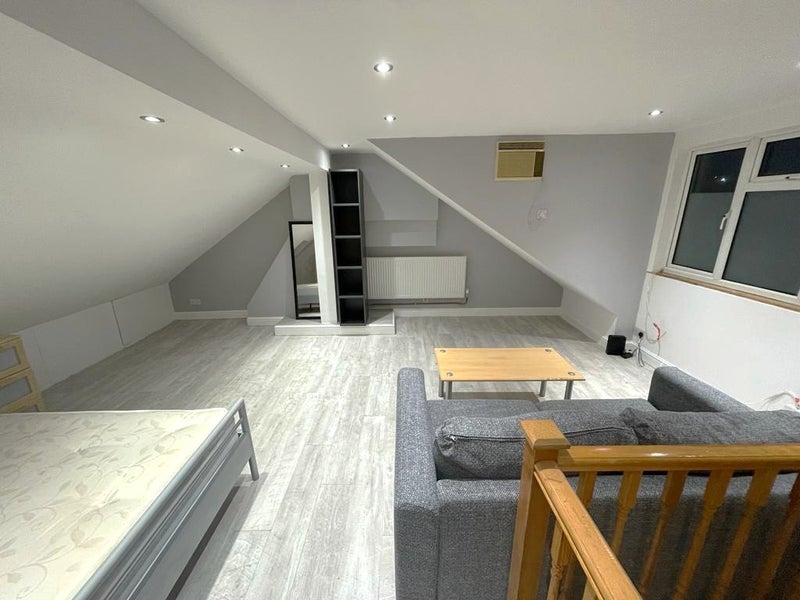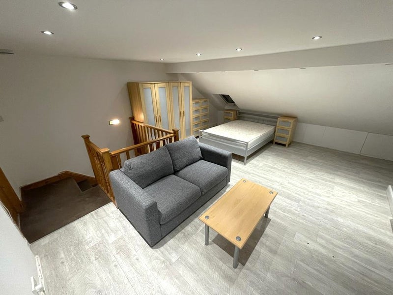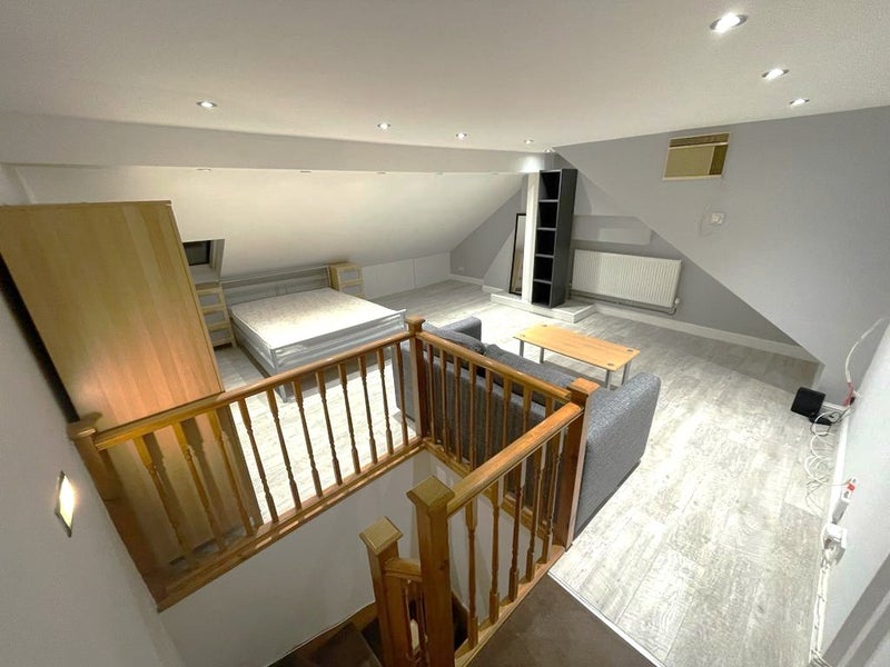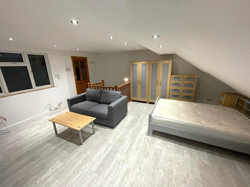 it has a separate bathroom and kitchen, the bedroom come living room is a very large loft space.