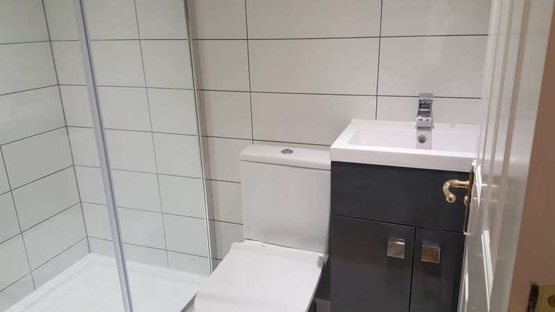 -Shower Room, Electric Shower, good size shower cubicle, vanity unit, towel rad.