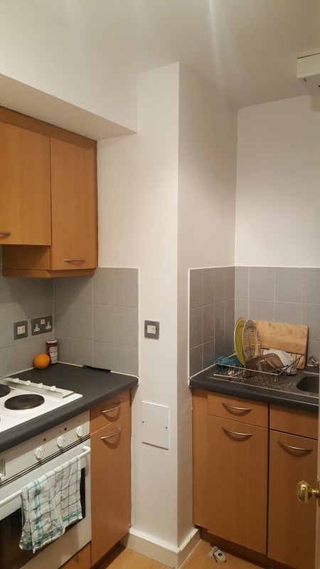 Kitchen- Electric hob/oven, wall units, microwave, fridge/freezer, washer/dryer