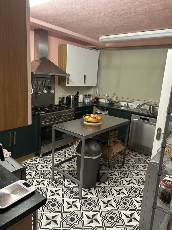 Kitchen, living room, and garden downstairs