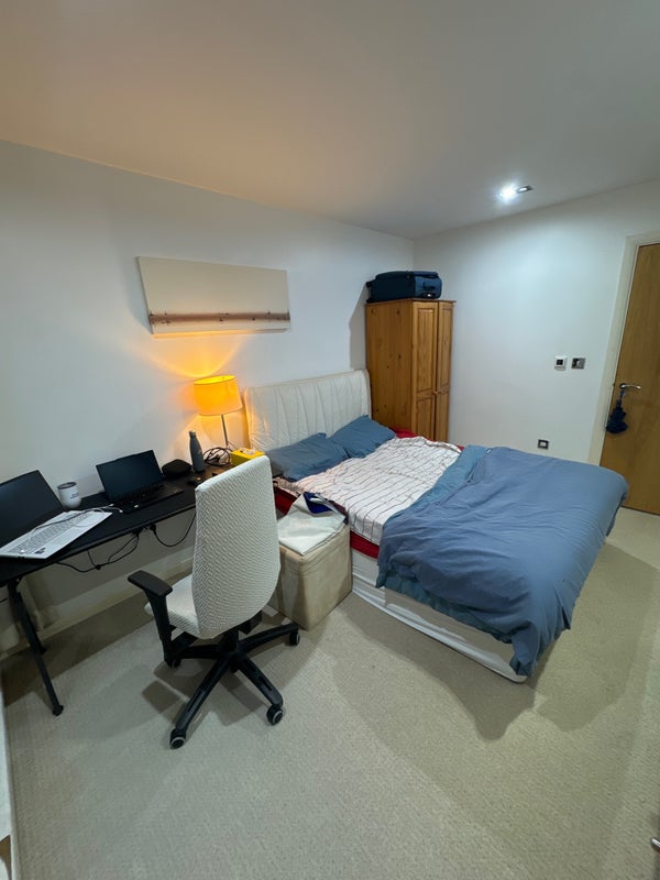 A fully furnished 1 bed king size room with a big balcony view. Next to Crossharbour DLR station and Canary Wharf. The room is in a 2-bedroom house with a nice fully furnished kitchen and living room. The other roommate is a guy working in finance. He is a nice dude but spends most of his time at work