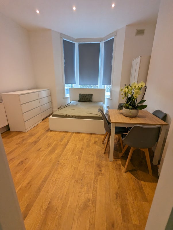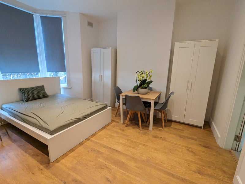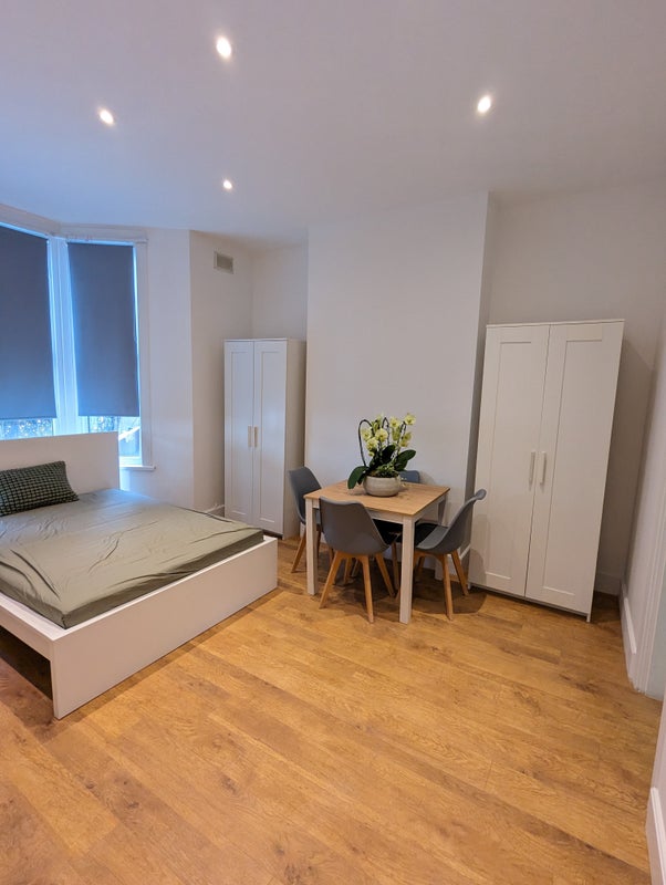 This studio flat is located in the heart of Crouch End, 2 mins walk to Turnpike lane station. The rent includes GAS & BROADBAND ONLY. The flat is on the ground floor has amazing large bright double glazing windows, high ceilings.