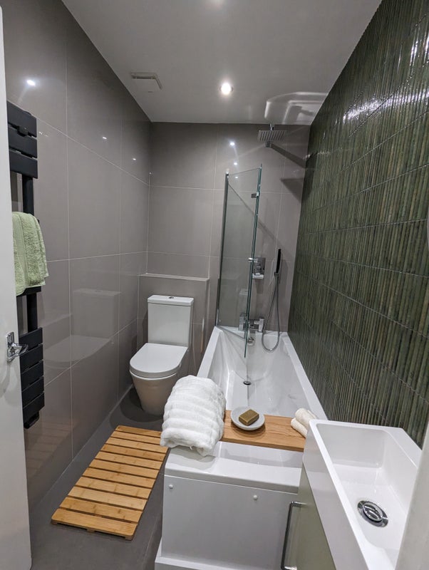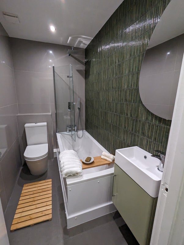 The entire flat has been design to experience calming, cozy natural and bamboo style. There is a gorgeous green breakfast area seperate. At the kitchen there is a washer dryer, built in oven electric hob new Bosch large fridge and freezer free standing.