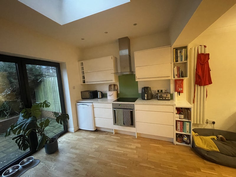 The flat is light and spacious with a cosy, homely feel. The shared kitchen/living room opens out on to a lovely big garden which is great in the summer. There is a parking space which is unused at the moment.