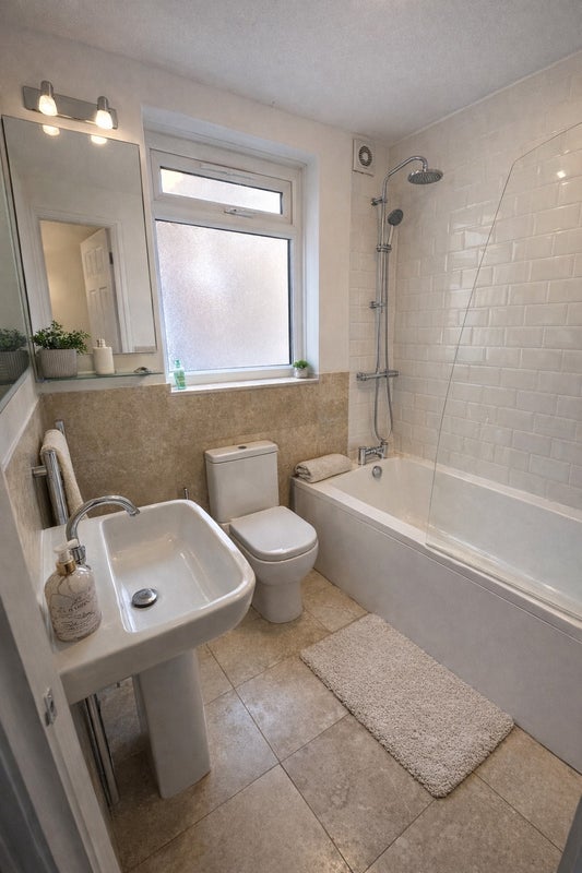 3 bedrooms total, with a spare room that leads onto a terrace (the spare room is being used as an office for one of us but you will have full access to the terrace).
