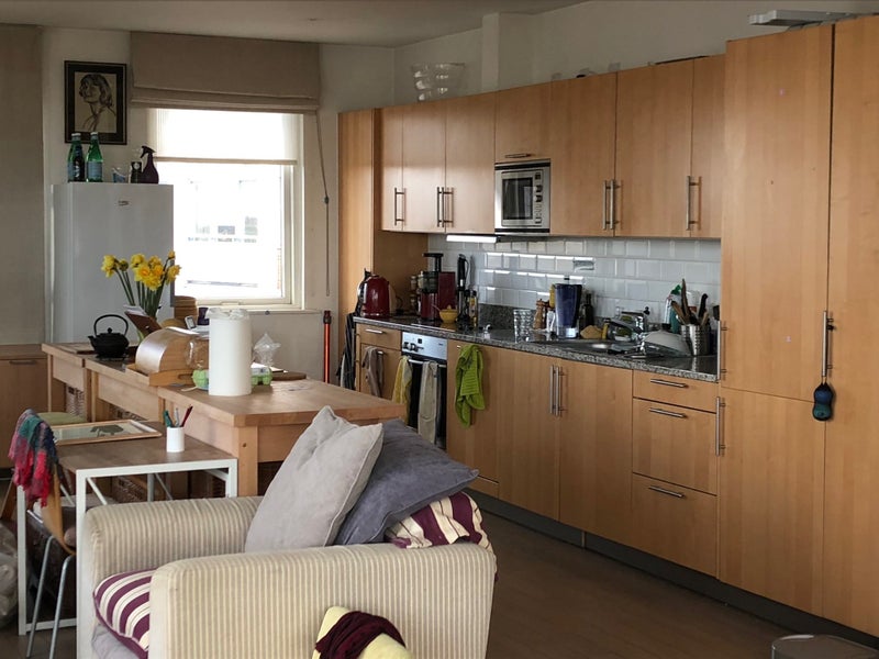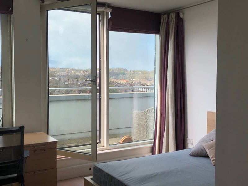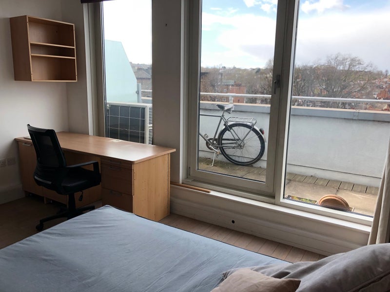 An airy room in a 3 bed flat on the top floor of a Crouch End modern block, right on the high street. I am a live-in landlord, in my sixties. I work from home and am a musician. I mostly work with headphones, composing, editing scores, or doing admin. I see a few students once a month on a Sunday afternoon, though there may be some students coming in on Saturdays for the next six months from February. All students are adult and we sing together in the main room.