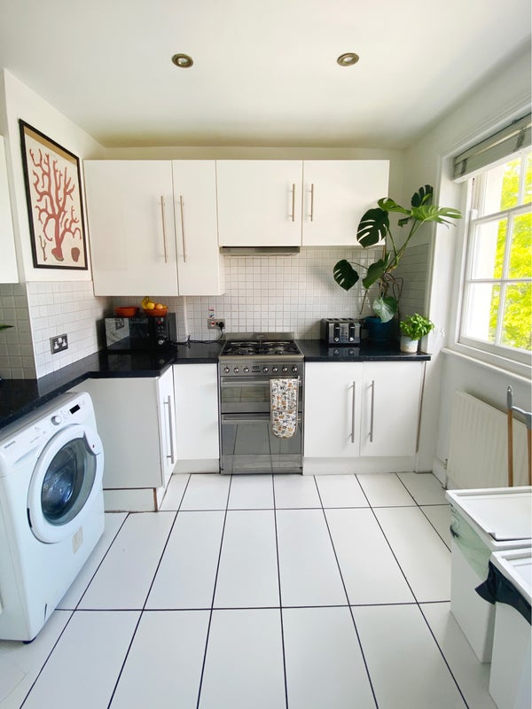 It’s a beautiful top floor flat with a lot of natural light all day long. Our bathroom is tiled and modern complete with a large bathtub and shower. There’s a washing machine in the kitchen, fast reliable internet, and central heating (everything is in great shape and working well)!