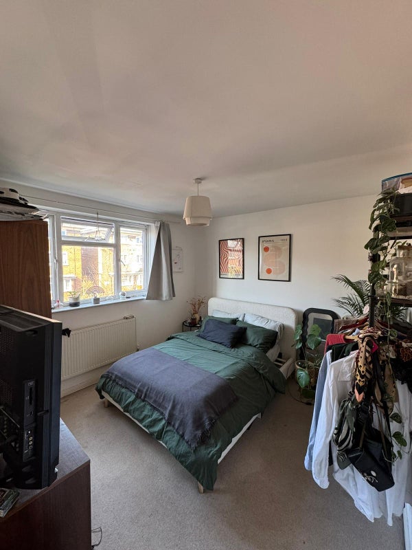 West-facing unfurnished double room with plenty of space for a bed. A wardrobe is included and mattress.